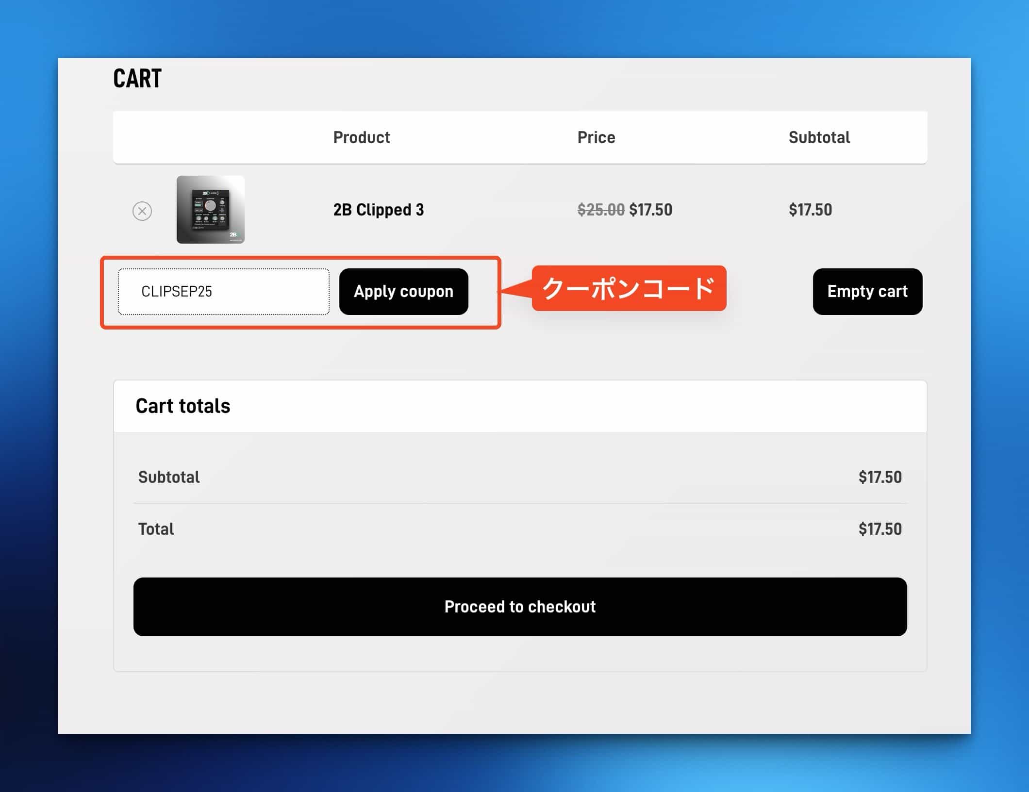 *お会計ページにて クーポンコード「CLIPSEP25」を適用します。