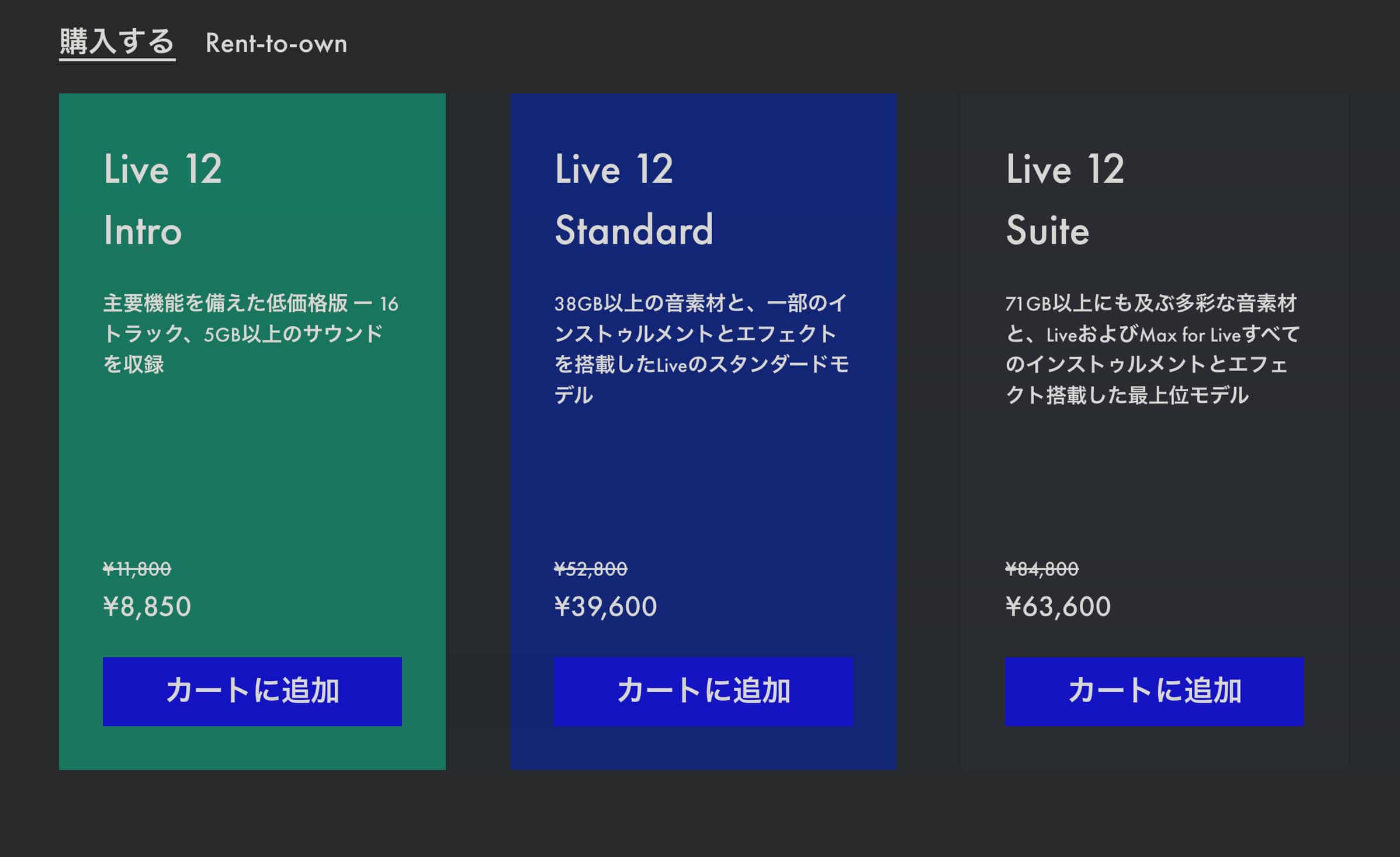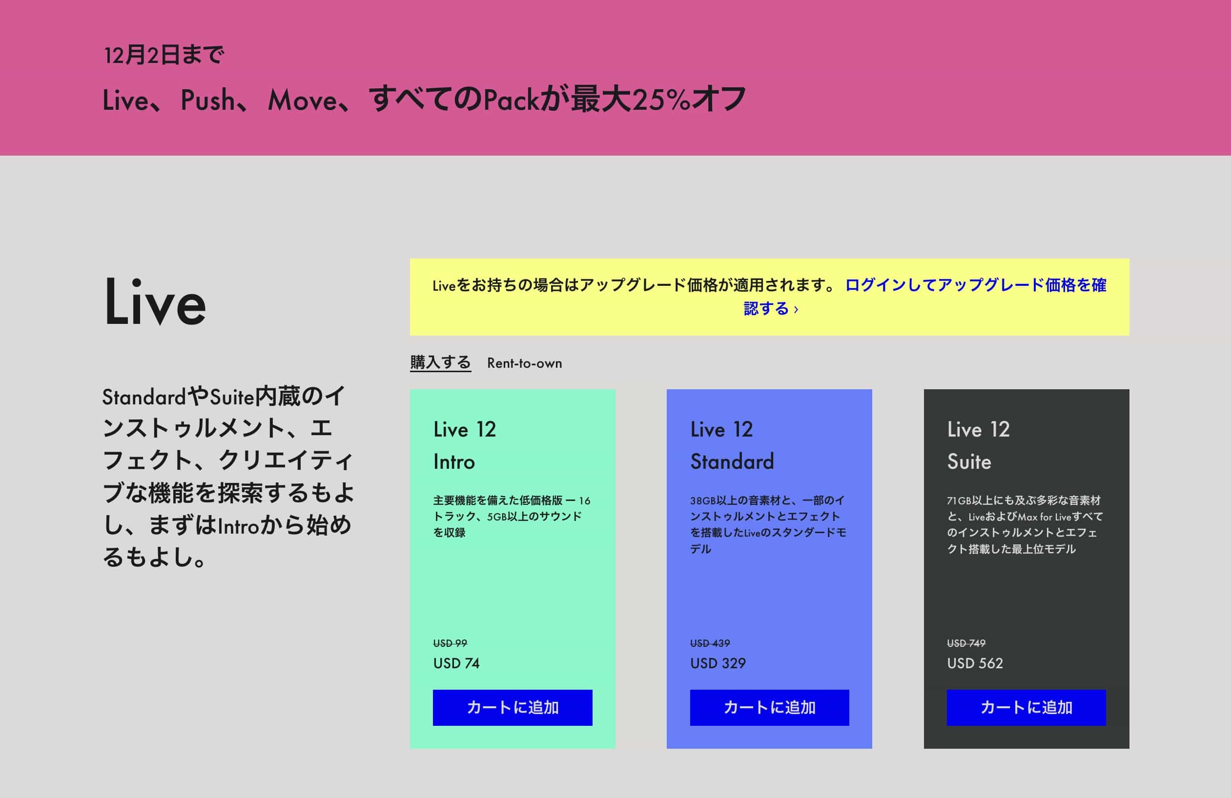 - Live 12 Intro:通常価格:79USD → セール価格:74USD