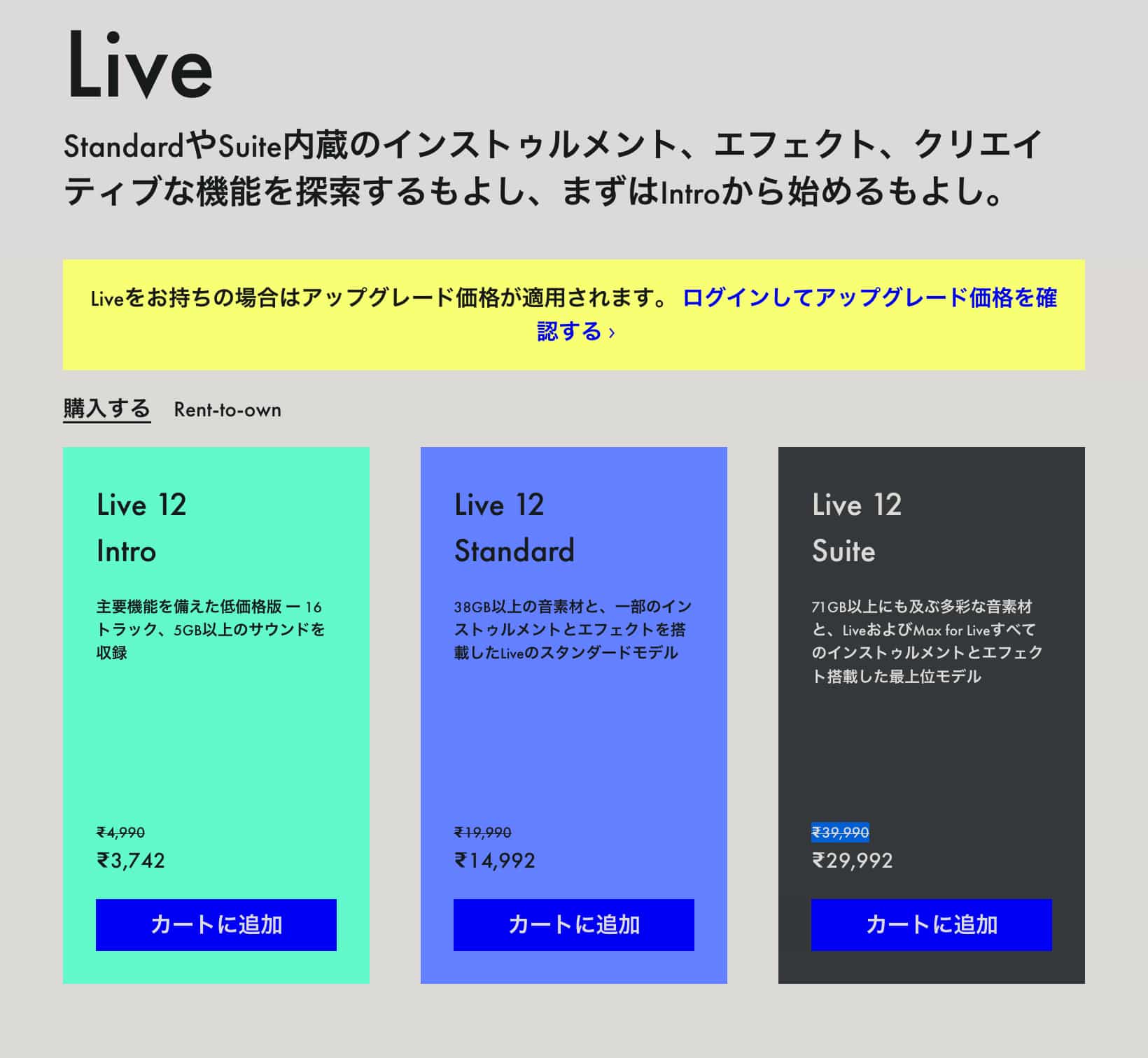 - Live 12 Intro:通常価格:₹4,990 → セール価格:₹3,742(約41.82USD)