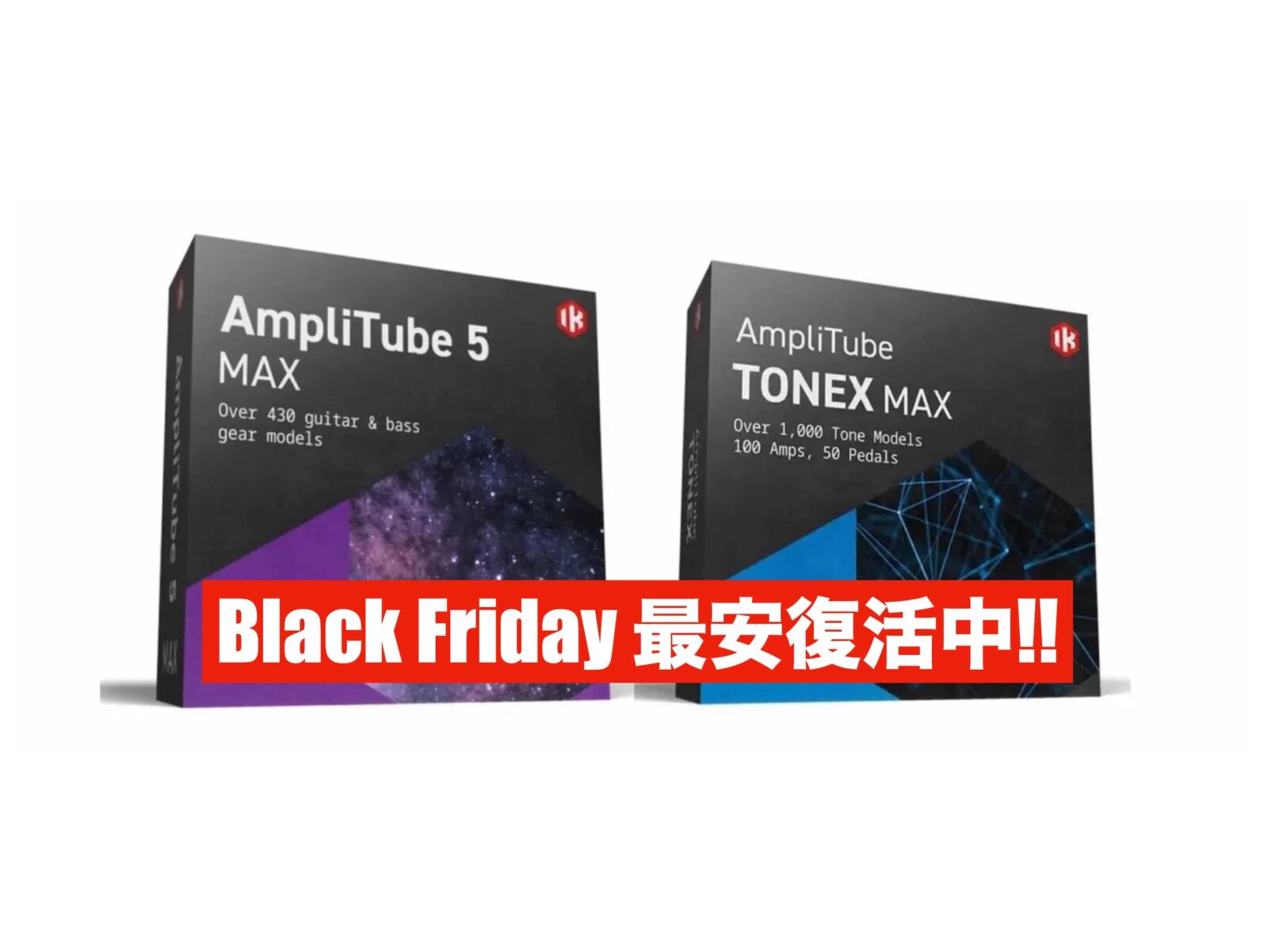 黒金最安復活【83%OFF!!】IK『AmpliTube 5 MAX v2+TONEX MAX』AIで様々なFX&アンプなどを再現できる最先端ソフトウェア上位版:2製品バンドル