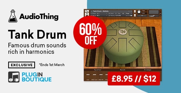 AudioThingのKontakt音源コレクション『Tank Drum』。スチールタンドラムをサンプリングしたバーチャルインストゥルメントです。