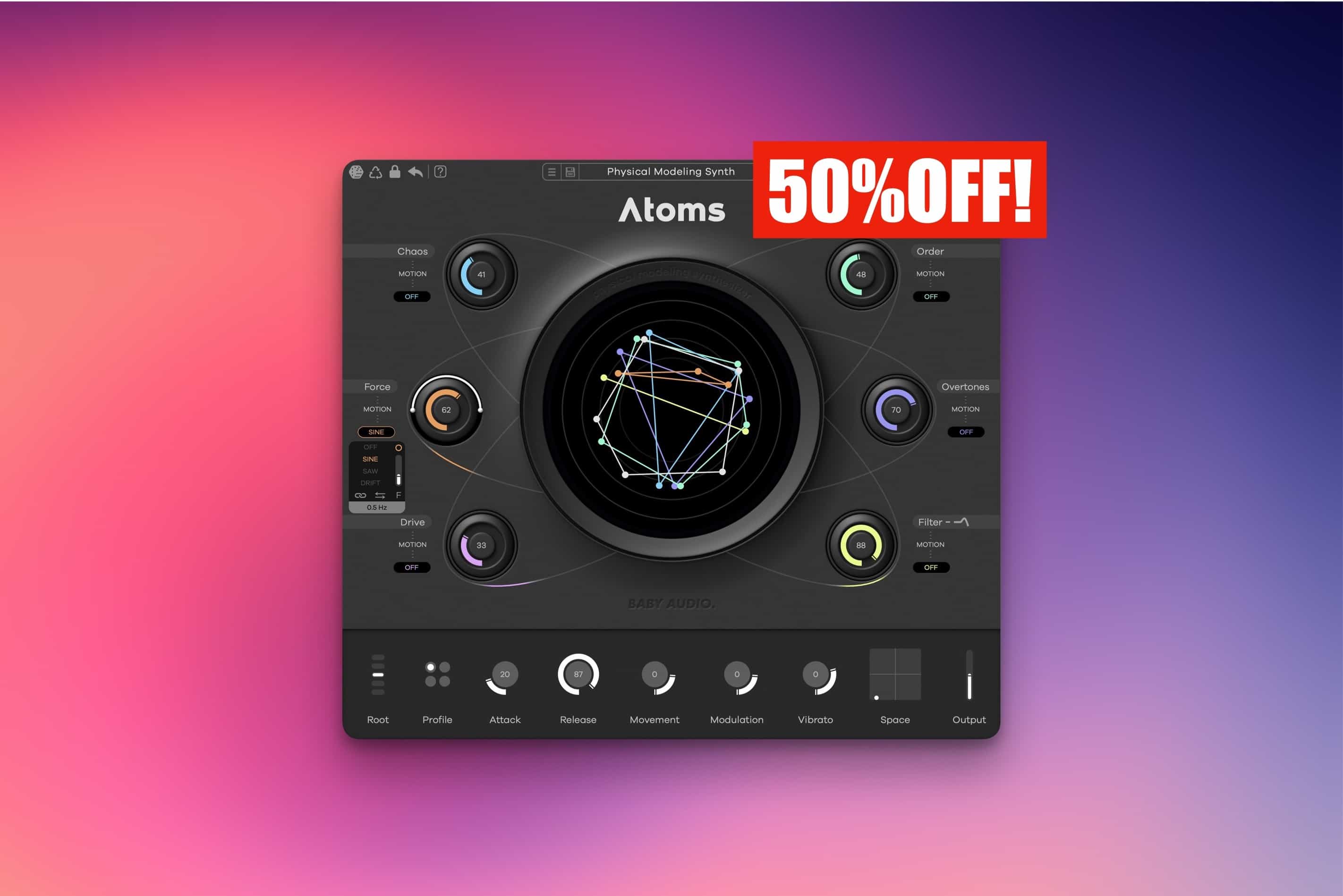 Baby Audio ブラックフライデーセール 2025が開催されています。同社の簡単操作のシンセプラグイン『Atoms』はおそらく最安値圏。