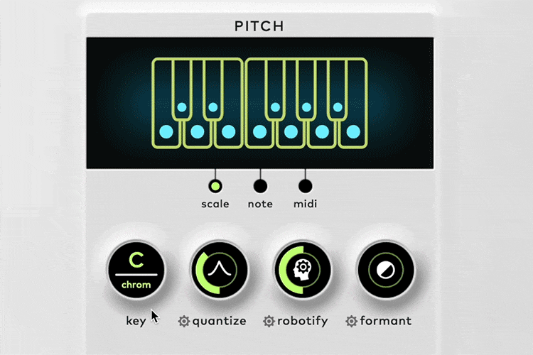 Scaleモードを使えば、選択したキーに合わせてリアルタイムで音程を補正できます。