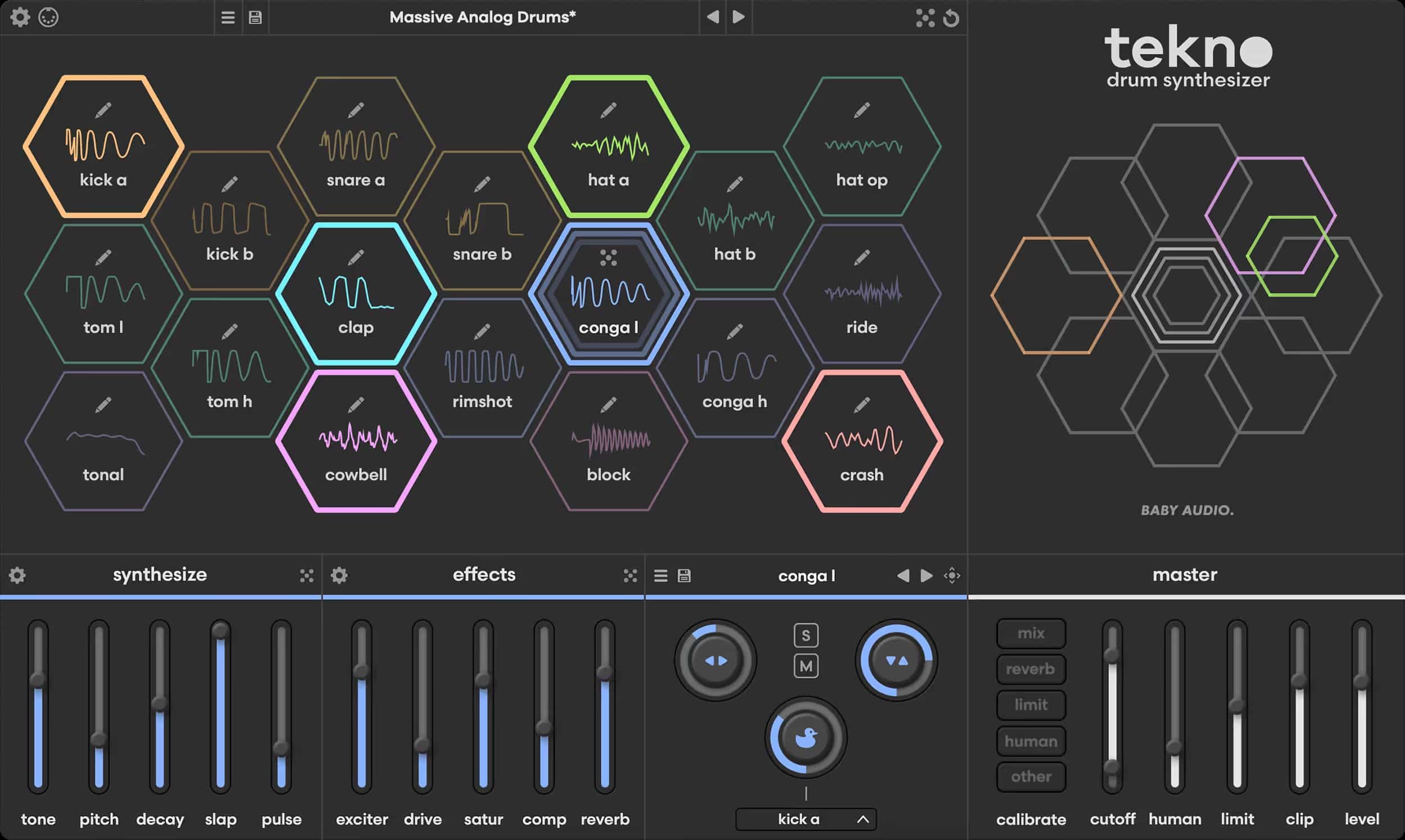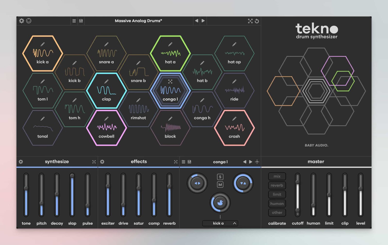 Baby Audio『Tekno』は、エレクトロニックミュージックのプロデューサーや、ドラムサウンドを深くカスタマイズしたいクリエイターに適しています。