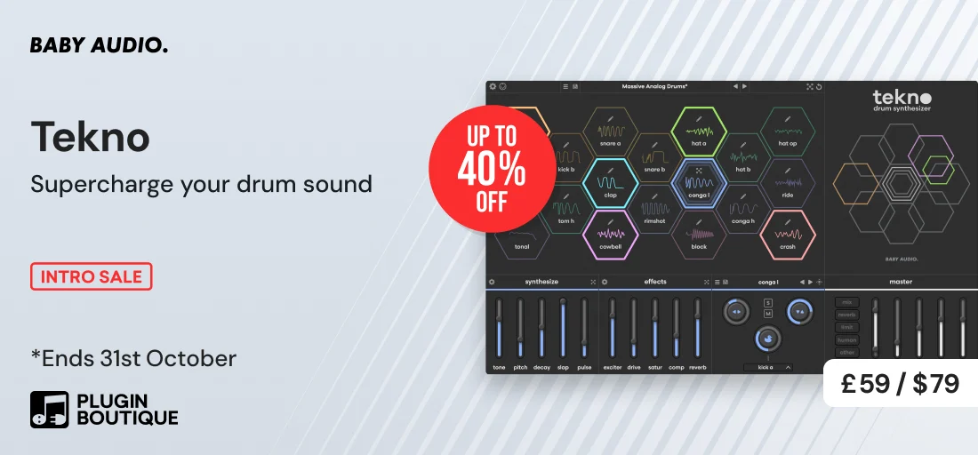 Baby Audioの最新ドラムシンセ『Tekno』が今期ブラックフライデーセールで、最安値になっています。