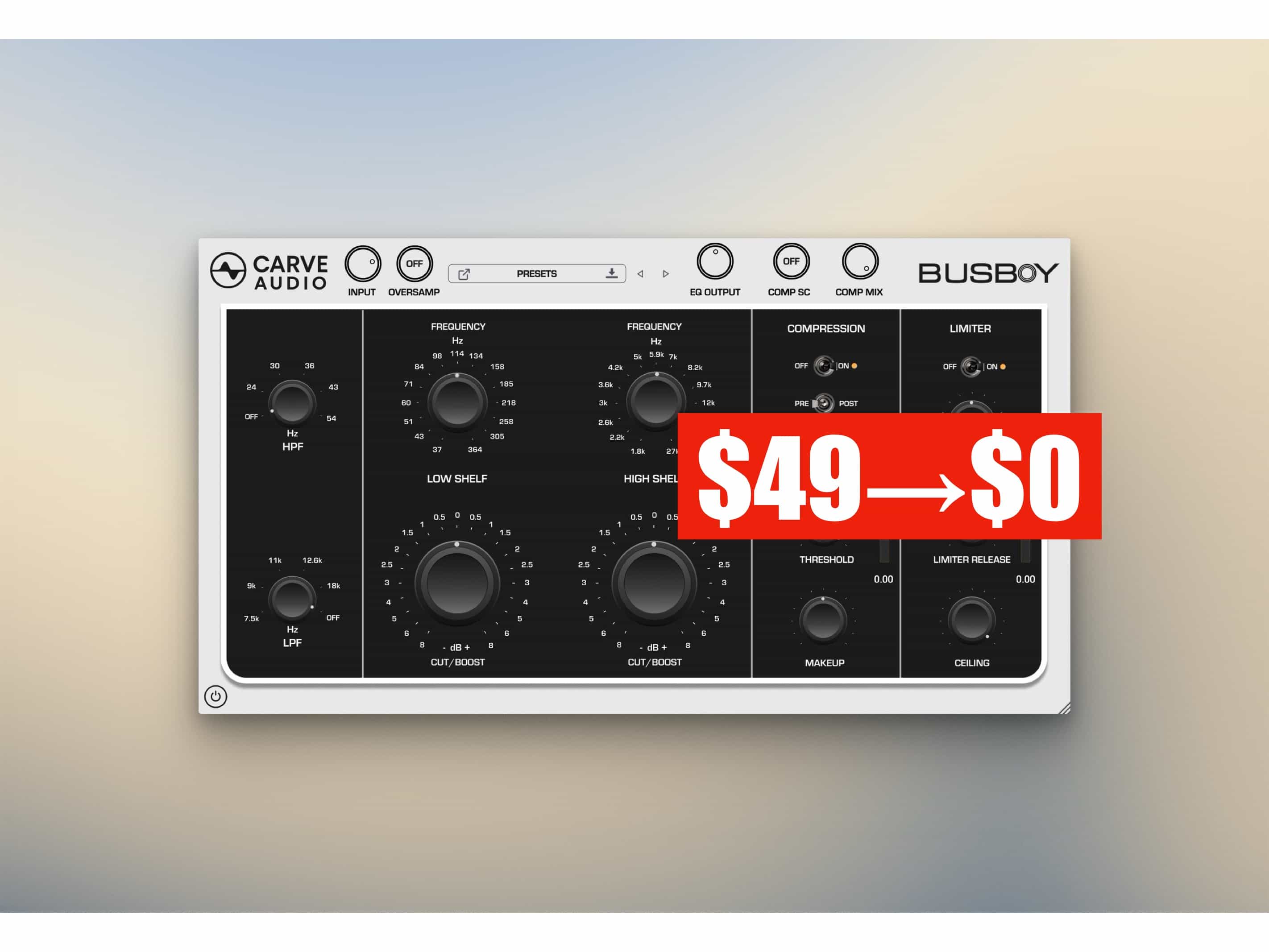 Carve Audioが、音質向上用プラグイン「Busboy」をリリースしました。これを記念して、無料でライセンスを提供しています(3/3以降は49ドルで販売されるようです)。