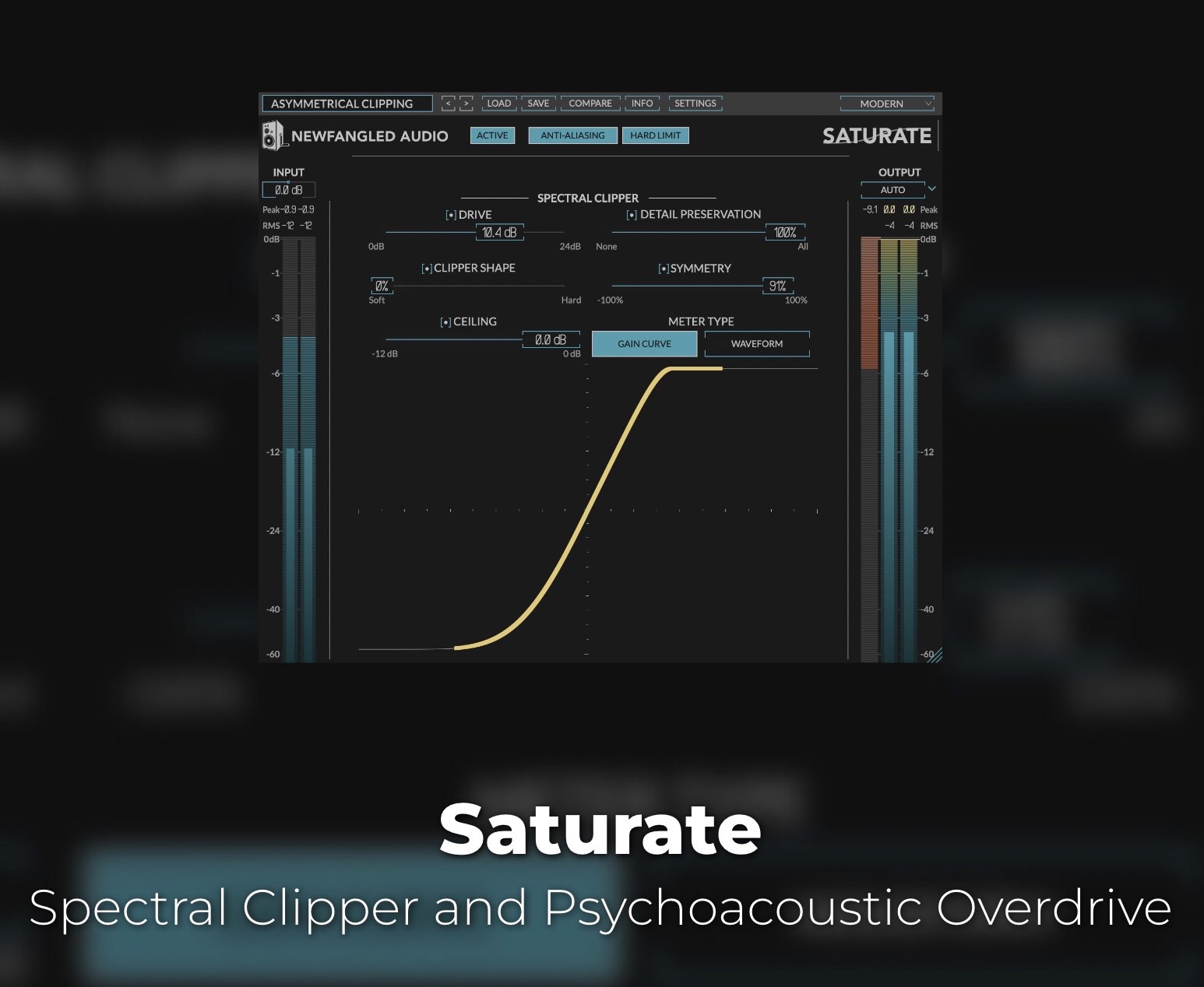 Saturateは、Elevate Mastering Limiterでおなじみの「Spectral Clipper アルゴリズム」を搭載したクリッパープラグインです。