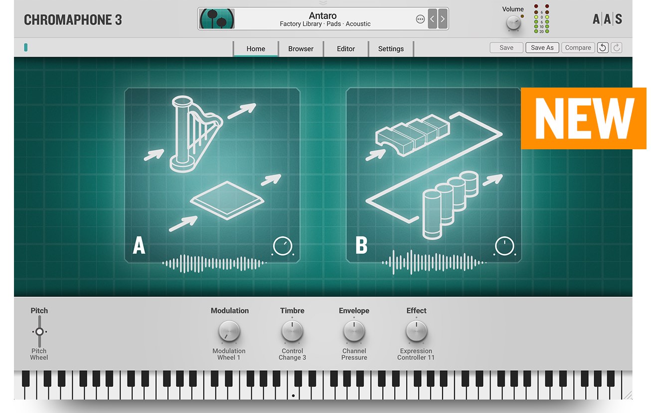 Chromaphone 3は、演奏するのもサウンドデザインするのも両方楽しい優等生。AASのシンセの中でも特に評価の高い人気のシンセです。