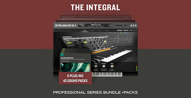 Integralには、プロフェッショナル・シリーズのインストゥルメント(Multiphonics CV-2、Chromaphone 3、Lounge Lizard EP-4、String Studio VS-3、Strum GS-2、Ultra Analog VA-3)とObjeq Delayエフェクト・プラグインが含まれています。