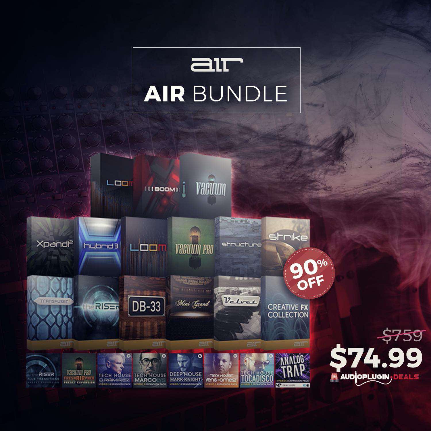 もしまだAir社の製品を持っていない場合は、以下のページでドラムマシンの「Boom」やシンセの「Vacuum Pro」などが4.99ドル(約522円)で購入可能です。