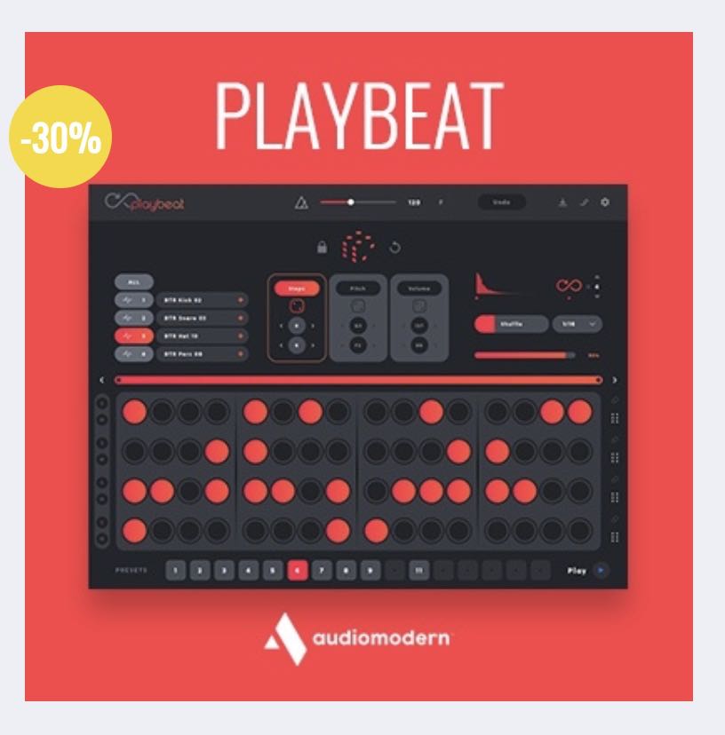 Audiomodern『 Playbeat』は、ビートとパターンを生成する『Creative Groove Randomizer』プラグインです。