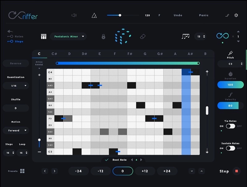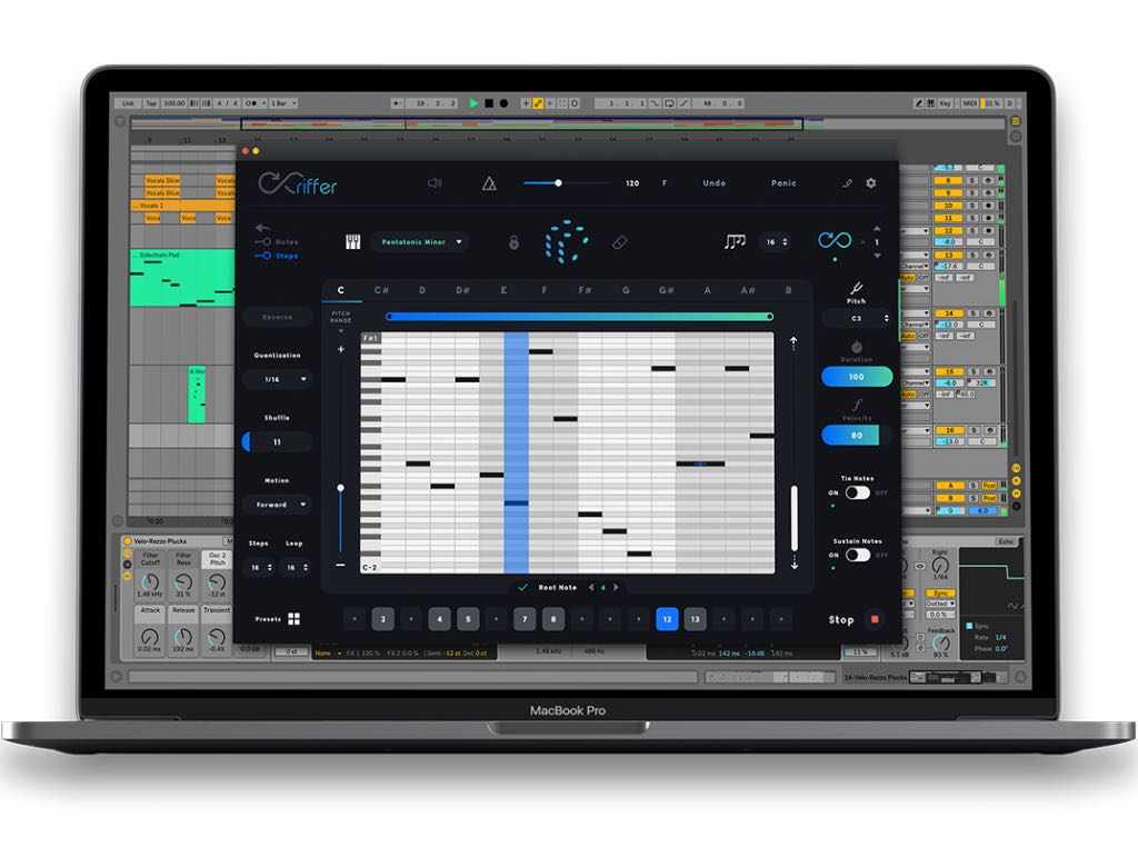 Rifferは、ランダムなパターンとメロディーを生成するクリエイティブなMIDIシーケンサーです。