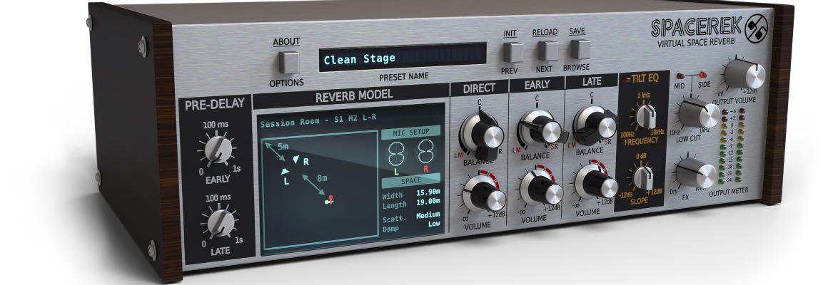 また、Spacerekの3チャンネル・ミキサーは、「ダイレクト・シグナル」、「アーリー・リフレクション」、「レイト・リフレクション」のバランスを容易にします。