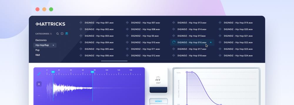 パートをレイアウトした後にサウンドを変更したいと思ったら、Hattricksの膨大なライブラリからサンプルを選択するか、お気に入りのサンプルをドラッグしてください。