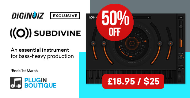 Diginoiz『Subdivine』は、TRAP、フューチャーR&Bなどのベースサウンドが鍵になるクラブミュージック制作に適したベースサウンド・プラグインです。
