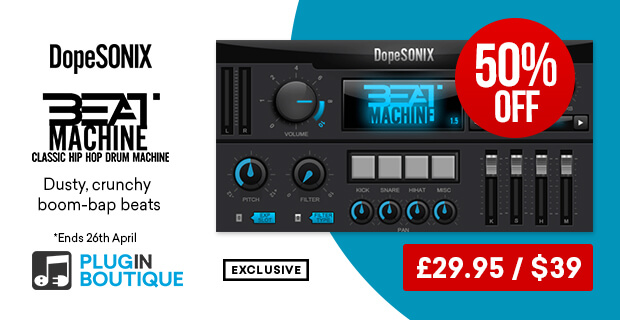 Hiphopトラック制作用の音源開発で著名なDopeSONIXのビート音源プラグイン『Beat Machine 1』が半額のセールになっています。
