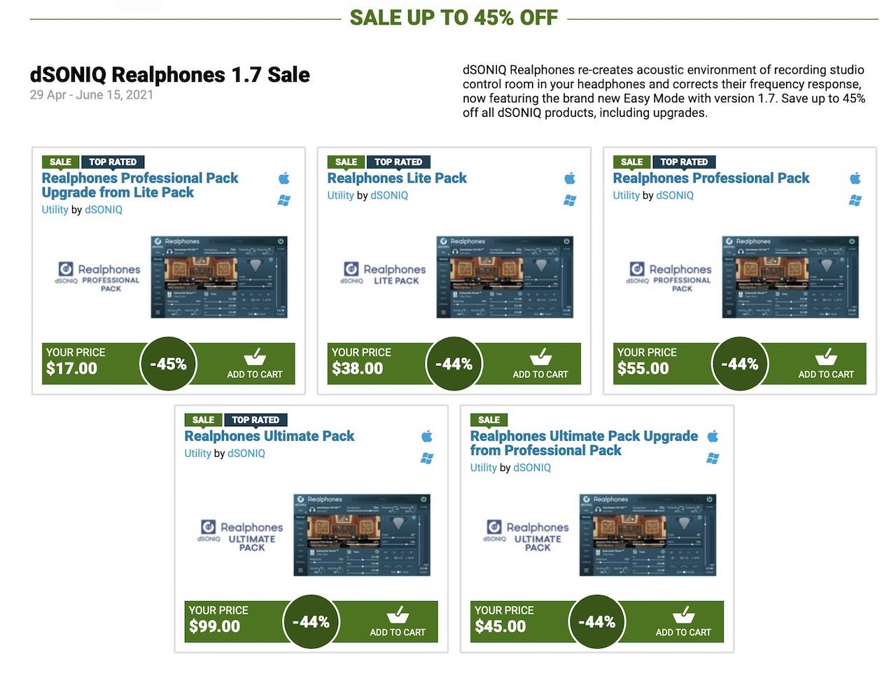 一方で、このRealphonesの上位版『Realphones Ultimate Pack』の通常価格は、179ドルです。