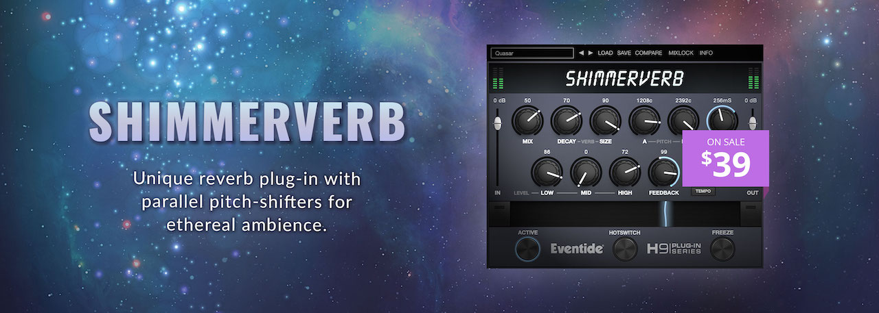 いままでは多くの場合、H910、H949、H3000などのEventideのピッチシフティングハードウェアをリバーブと組み合わせて使用することで、このShimmerVerbのような効果をプロデューサーたちは作り出してきました。