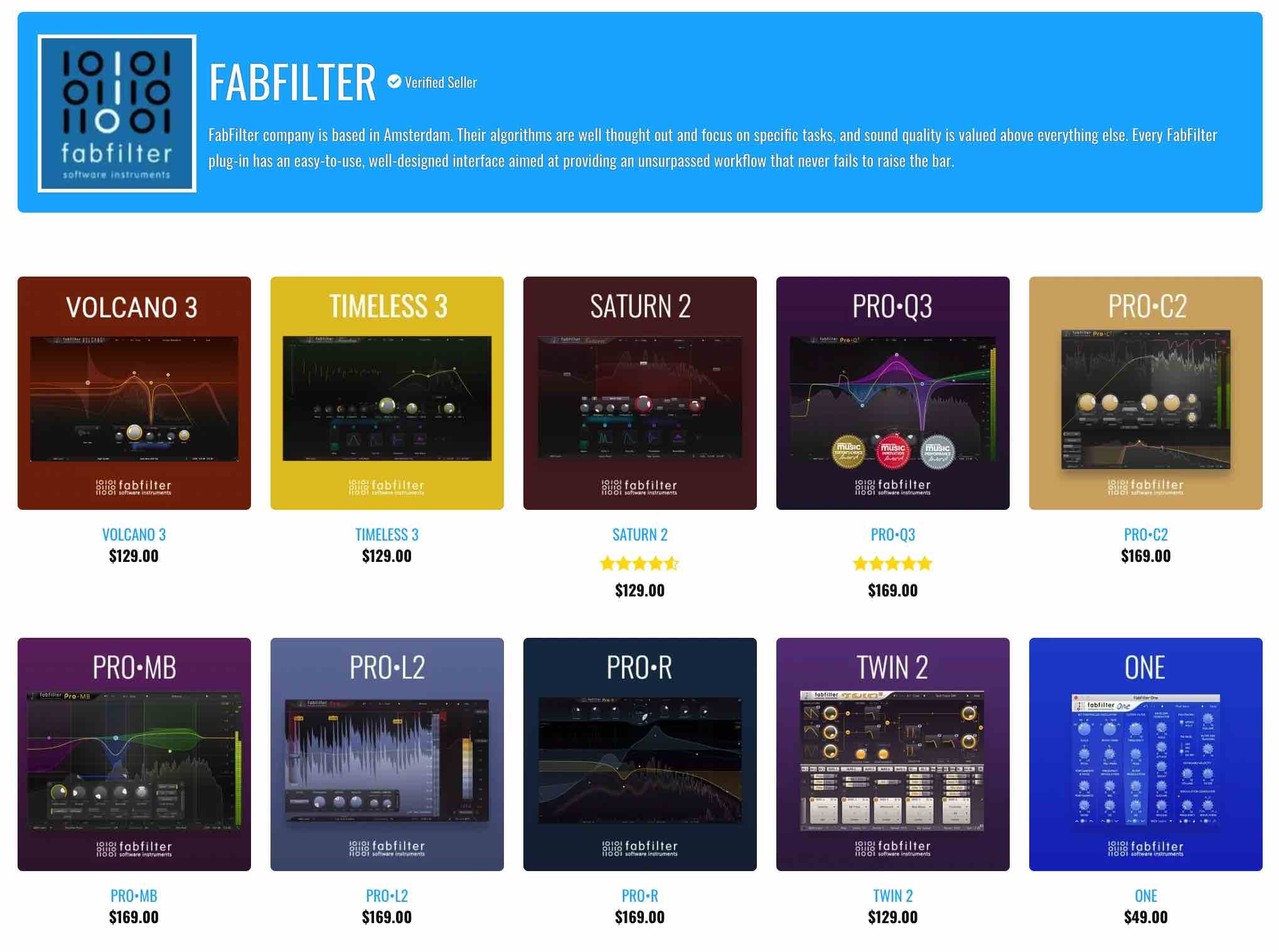 FabFilterの最重要なエフェクト・プラグイン10製品入り