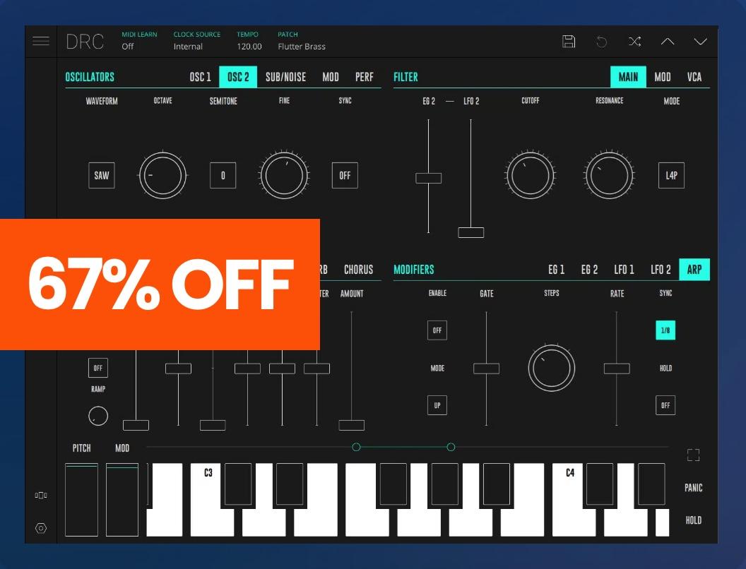 DRCは、アナログシンセサイザーの特徴的なサウンドを再現するパワフルなバーチャルアナログポリフォニックシンセサイザーです。