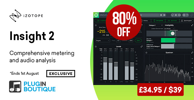 iZotope社のオーディオ分析総合ツール(最新メーター&アナライザー)プラグイン『Insight 2』が期間元てで無料配布されています! どなたでもゲット可能です。