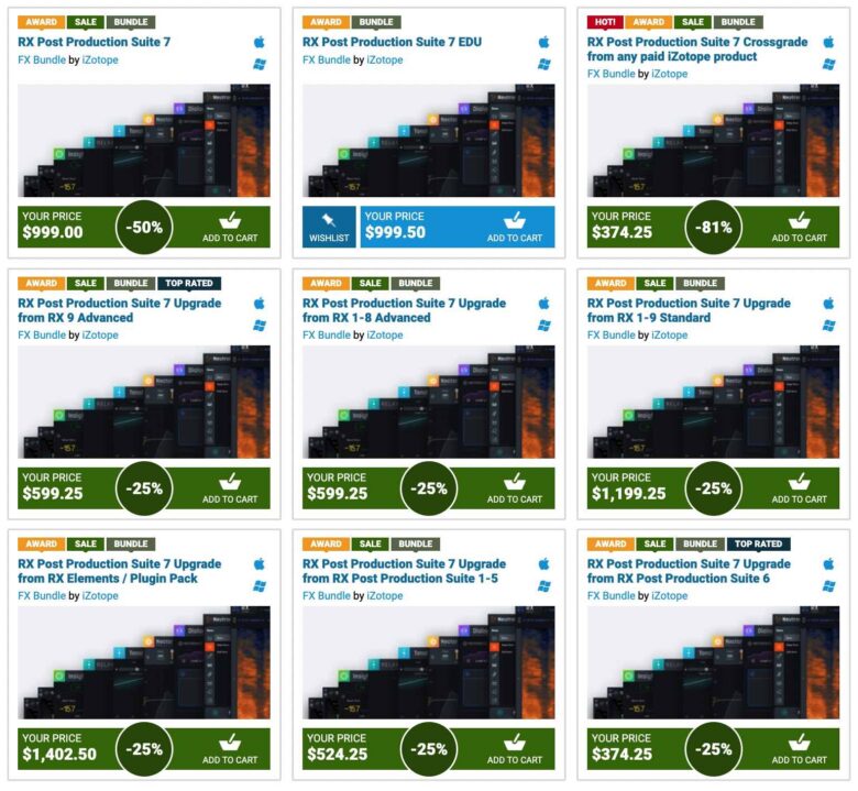 iZotopeの上級製品をお持ちの方向けのアップグレード