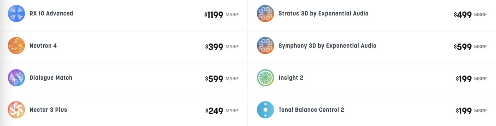 上記の製品に加えて、Dialogue Match、Symphony 3D、Stratus 3Dなどの必須のワールドクラスのリバーブツールも含まれています。