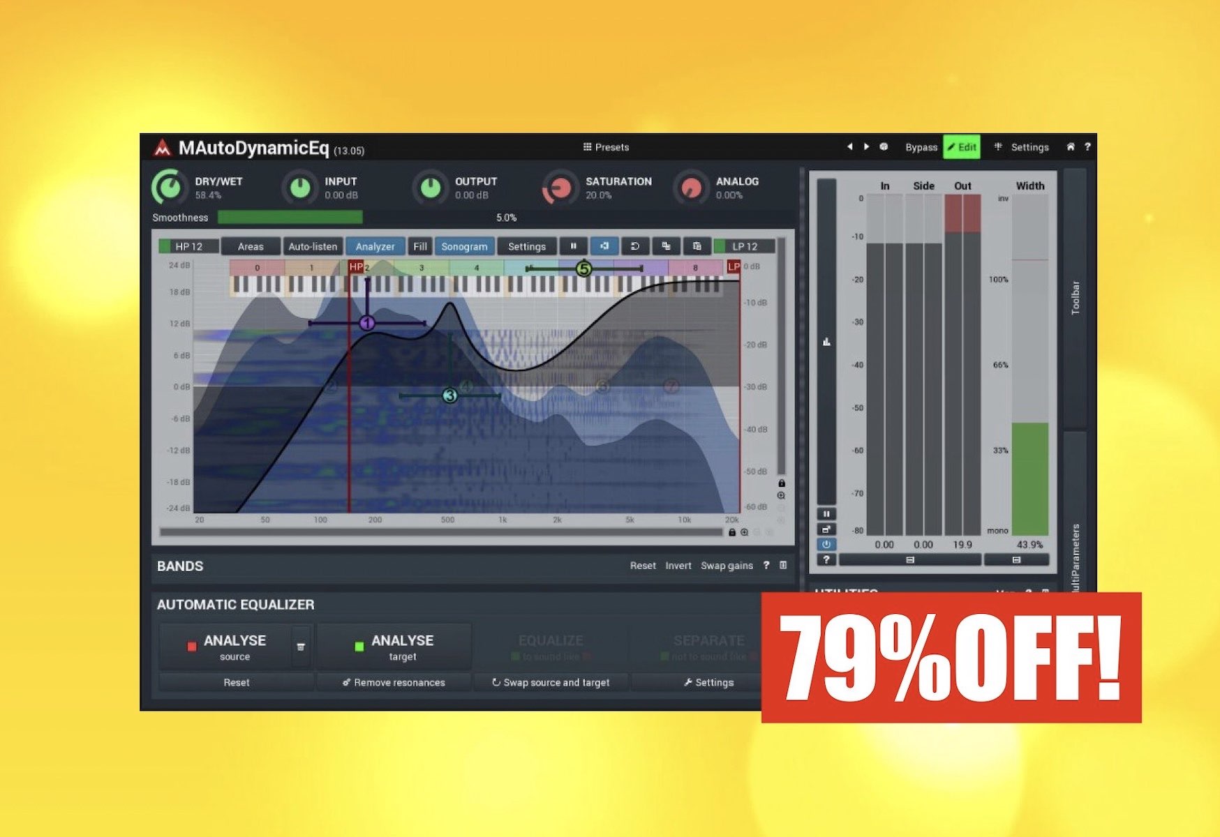 MAutoDynamicEQは、驚くべき多用途性と使いやすさを兼ね備えた究極のパラメトリックイコライザーです。