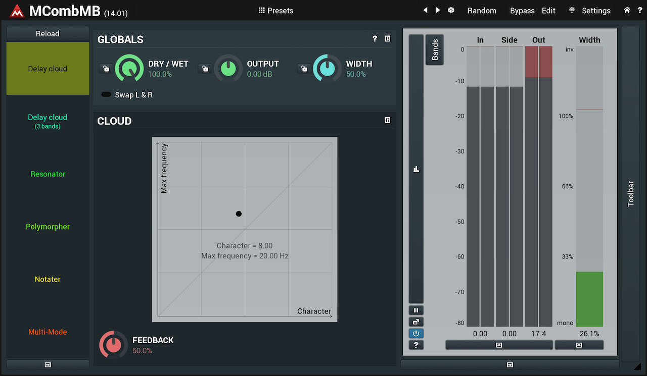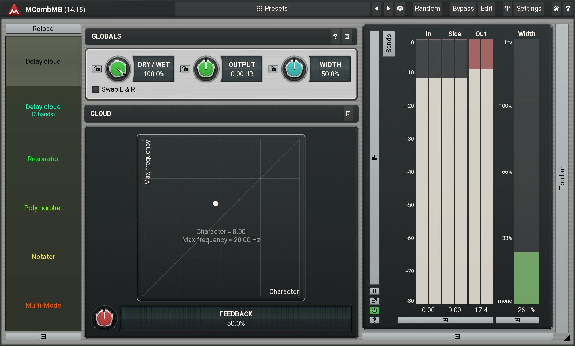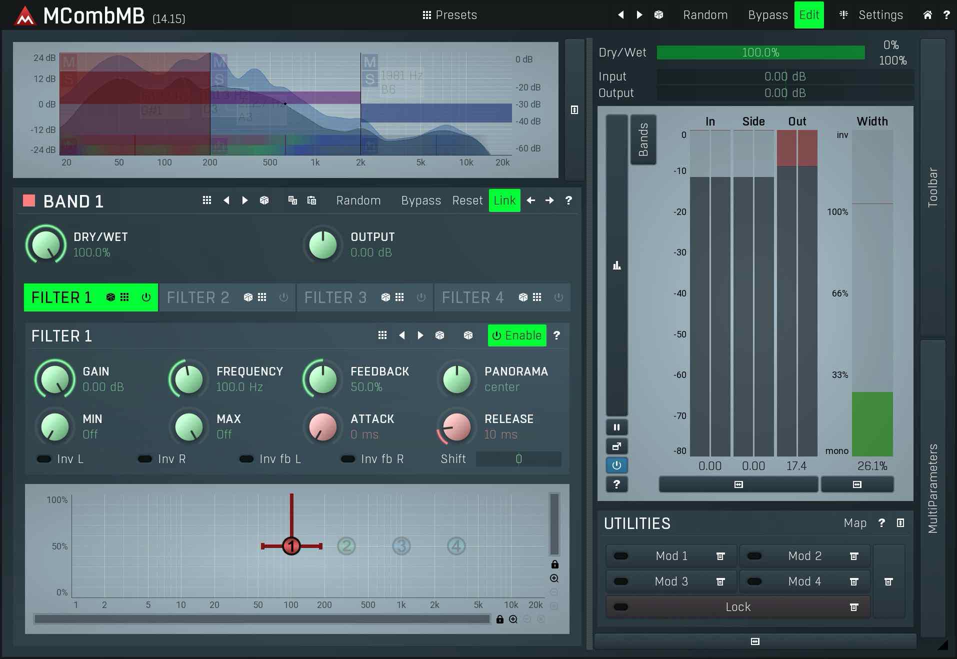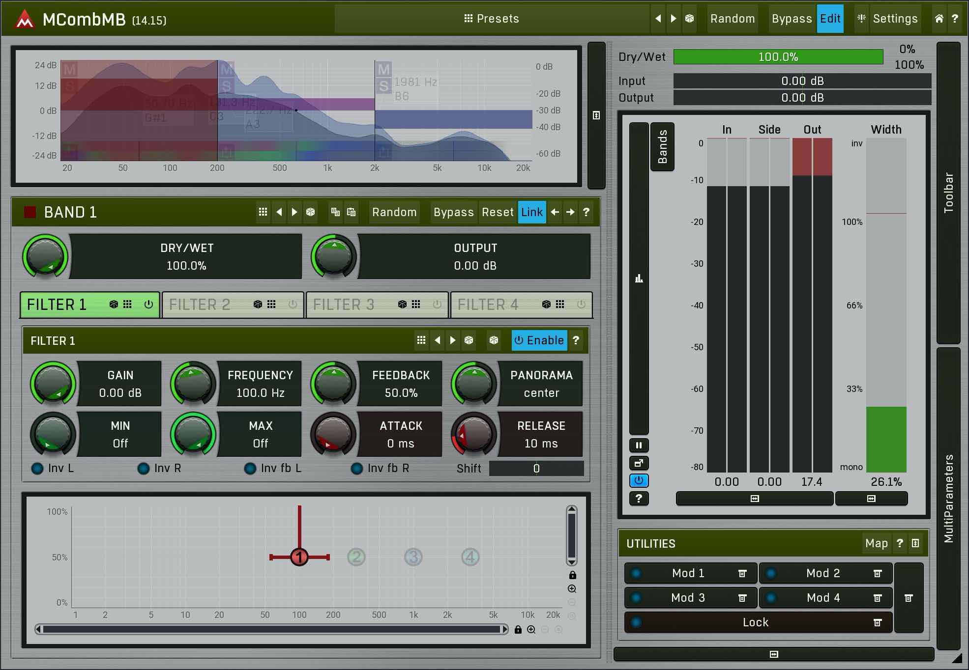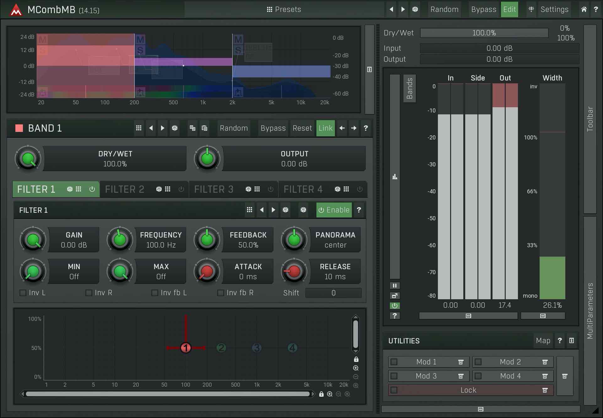 各バンドに4つの特別なフィルターを使用できる「MComb」のマルチバンド版『MCombMB』