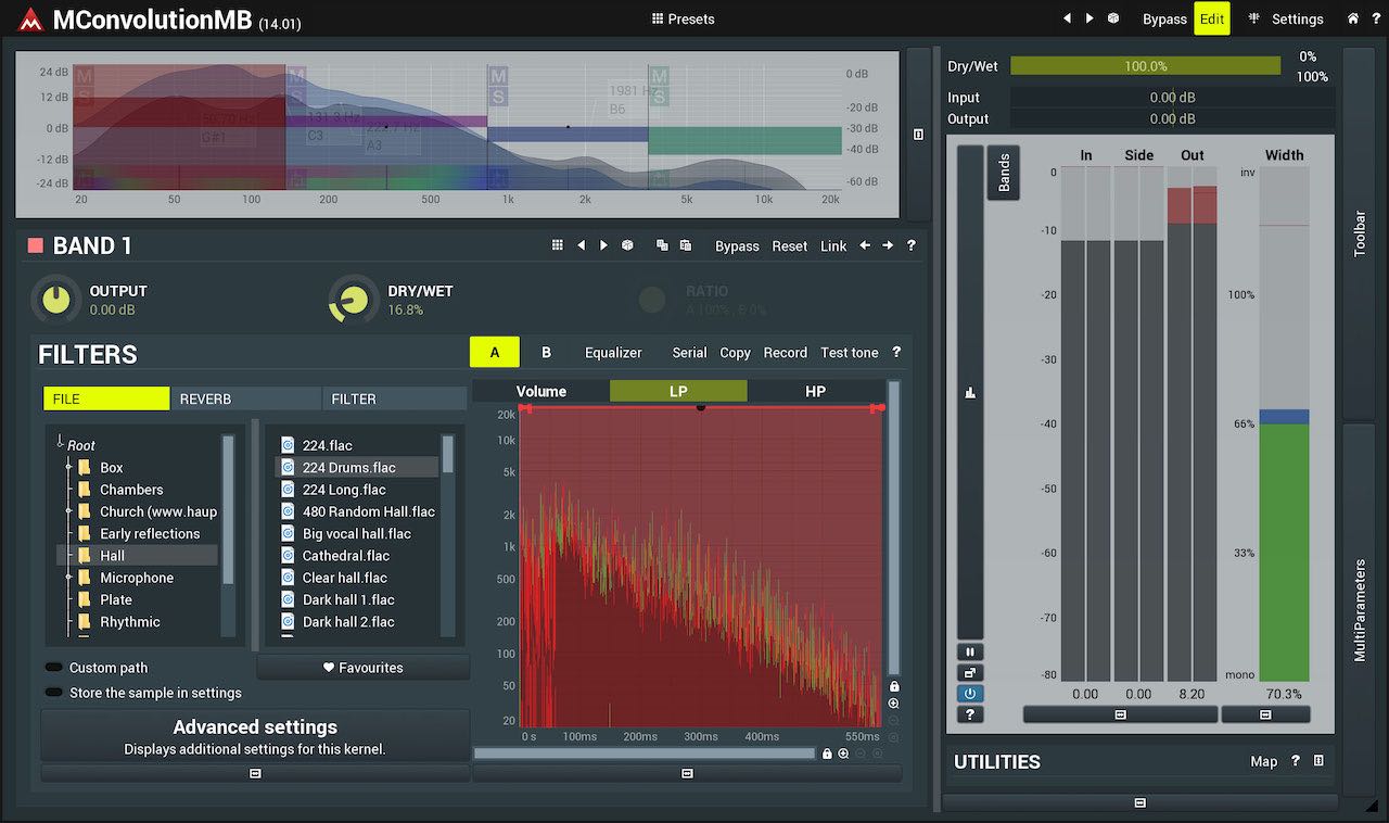 MConvolutionMBは、マルチバンドで機能する(ゼロレイテンシーの)コンボリューション・プラグインです。