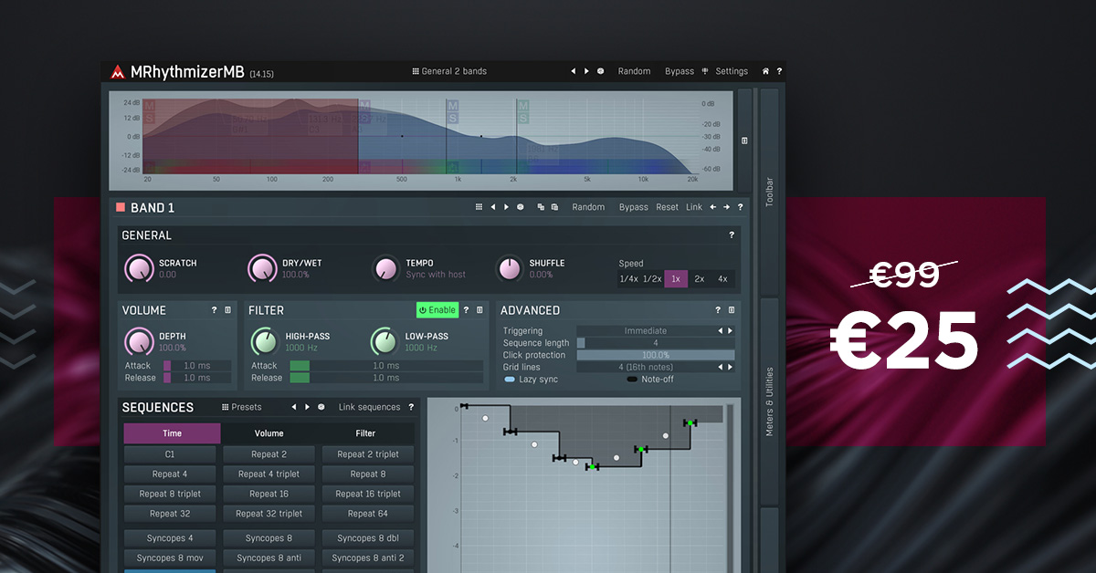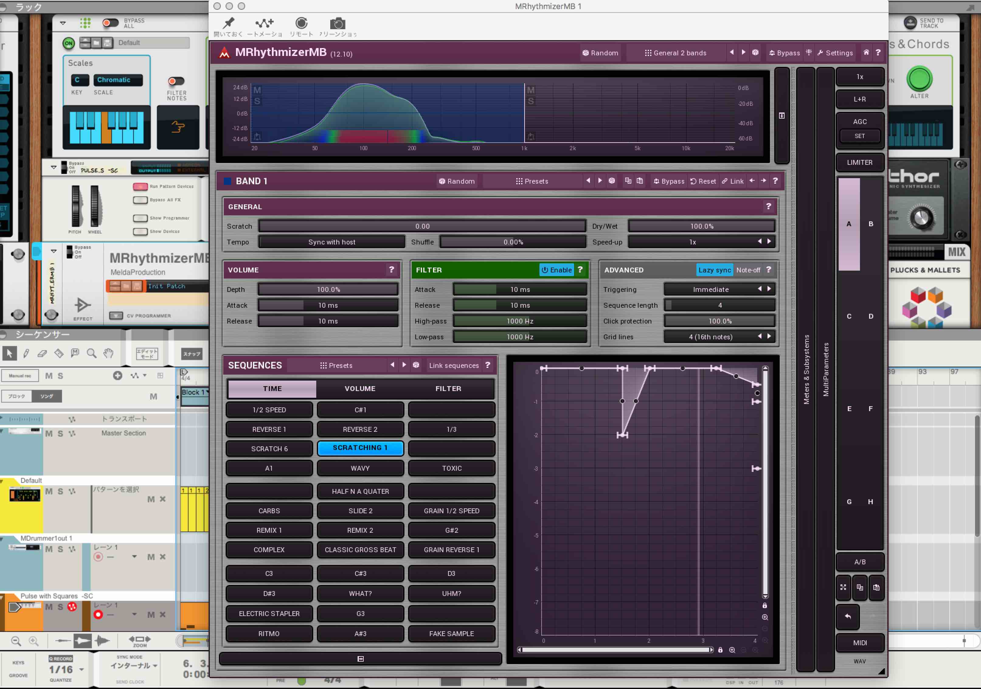 MRhythmizerは、DJライクな即興エフェクトを簡単に作り出すプラグイン。スクラッチやスタッター、テンポを変更したりと、様々な用途で使用できます。