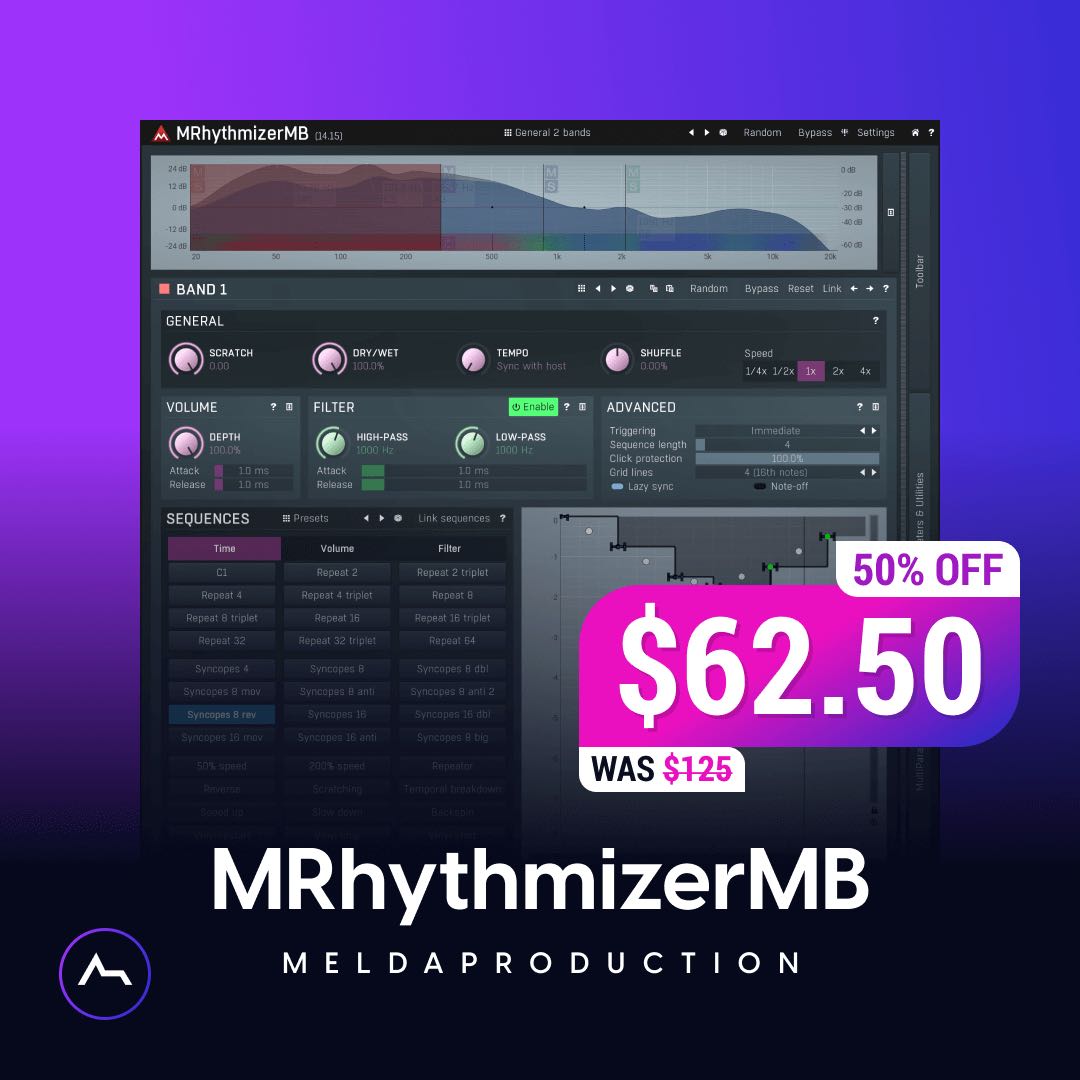 MRhythmizerは、MeldaProductionの製品群でも抜群の人気を誇る製品です。(GrossBeatとは違い、Macでも使用できます。)