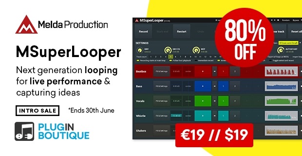 MeldaProductionのライブ対応のループツール&マルチFX・プラグイン『MSuperLooper』。
