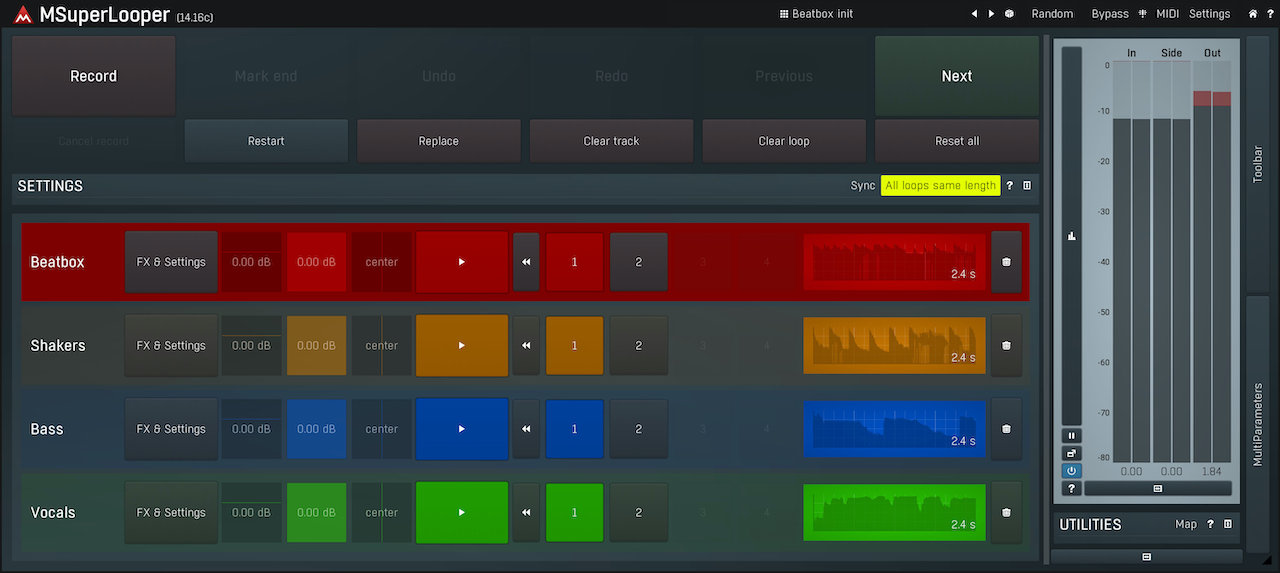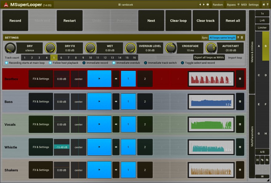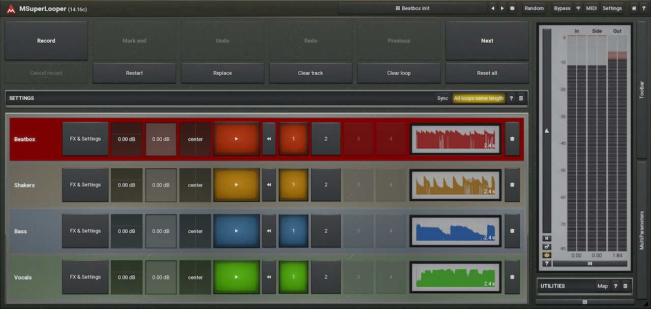 MSuperLooperは最大16トラックを備え、それぞれに4つのループがあり、汎用性が向上しています。