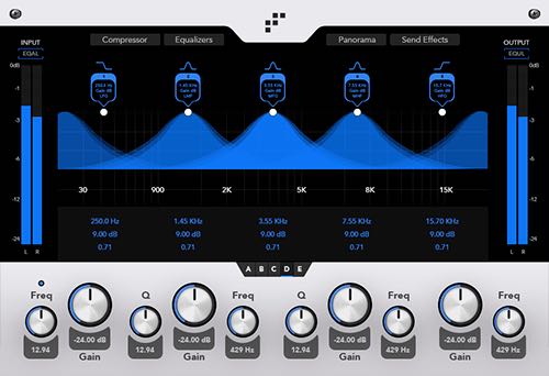 メインの5バンドの多用途イコライザーと各音源の個別の3バンドイコライザーを搭載。