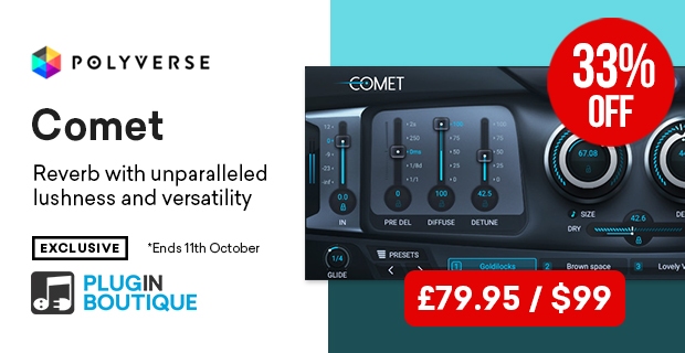 Polyverse社が開発している新しいリバーブプラグイン「Comet」がベータ版リリースで、クーポン発行しています。