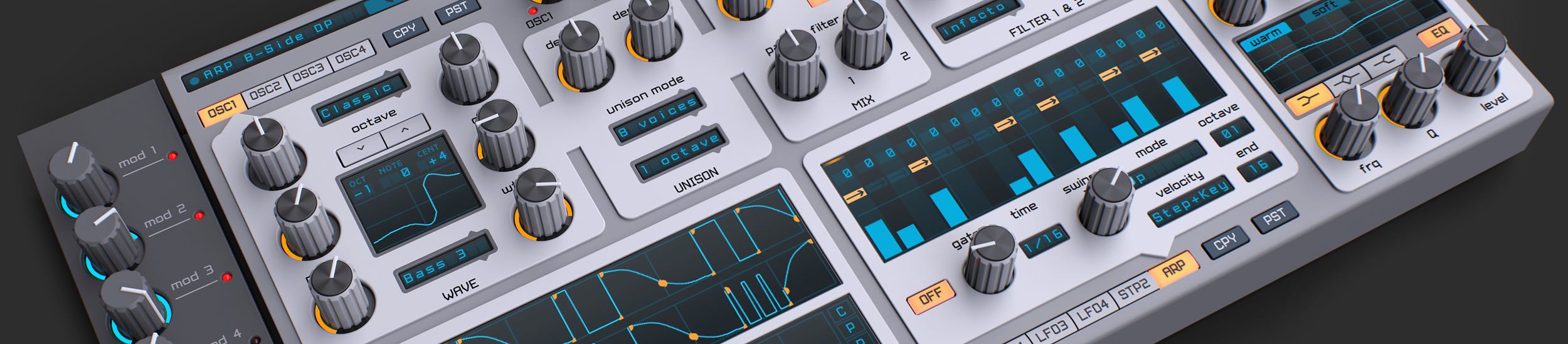 - 複雑なアルペジオやベースシーケンスを含む800以上のファクトリープリセット