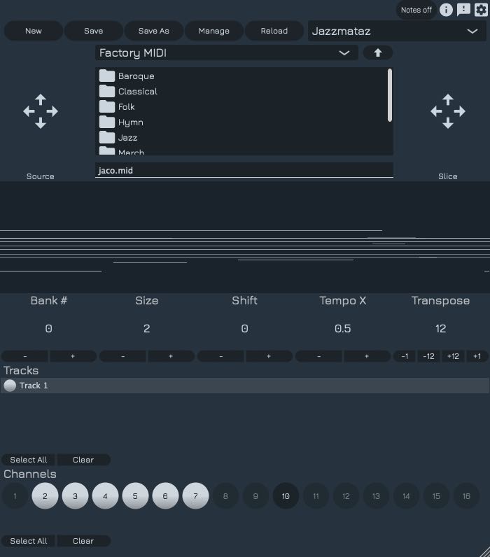MIDIファイルから音符をサンプリングし、サンプルの検索、チョップ、キーシフト、タイムストレッチを素早く行い、コントローラにマッピングすることができるMIDIエフェクトプラグインです。