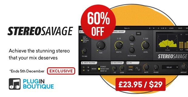 Plugin Boutiqueの『StereoSavage 2』は、ミックスにふさわしい魅力的なステレオを実現します。