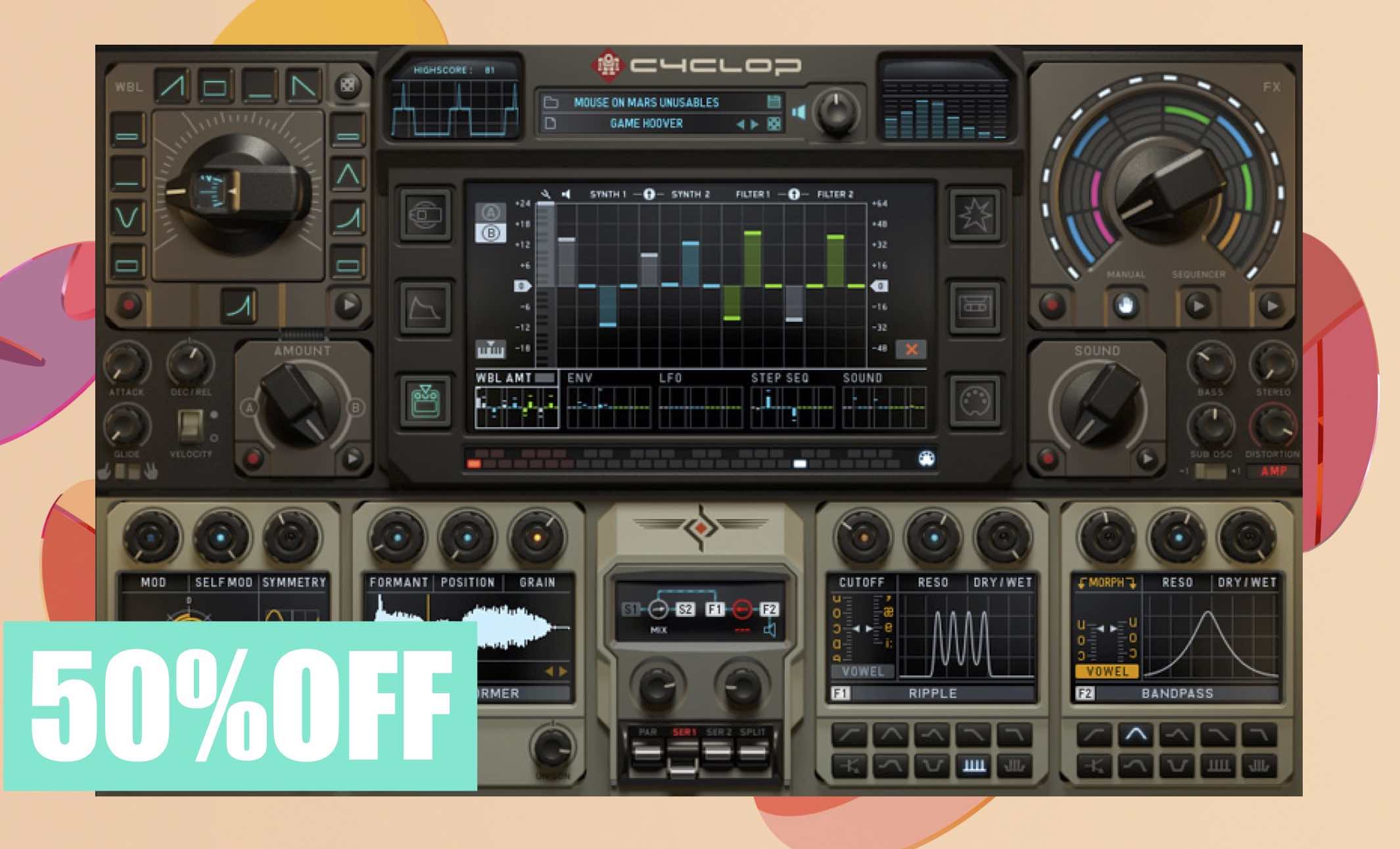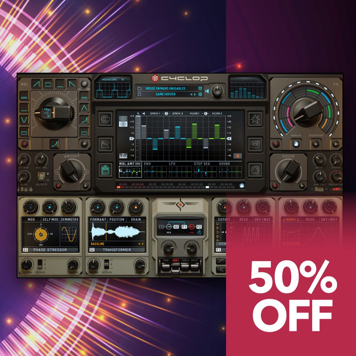 ウォブルノブ、FXシーケンサー、そして底抜けに愉快で多才なサウンドエンジンが、あなたに無限のサウンドデザインの喜びを与えてくれるでしょう。
