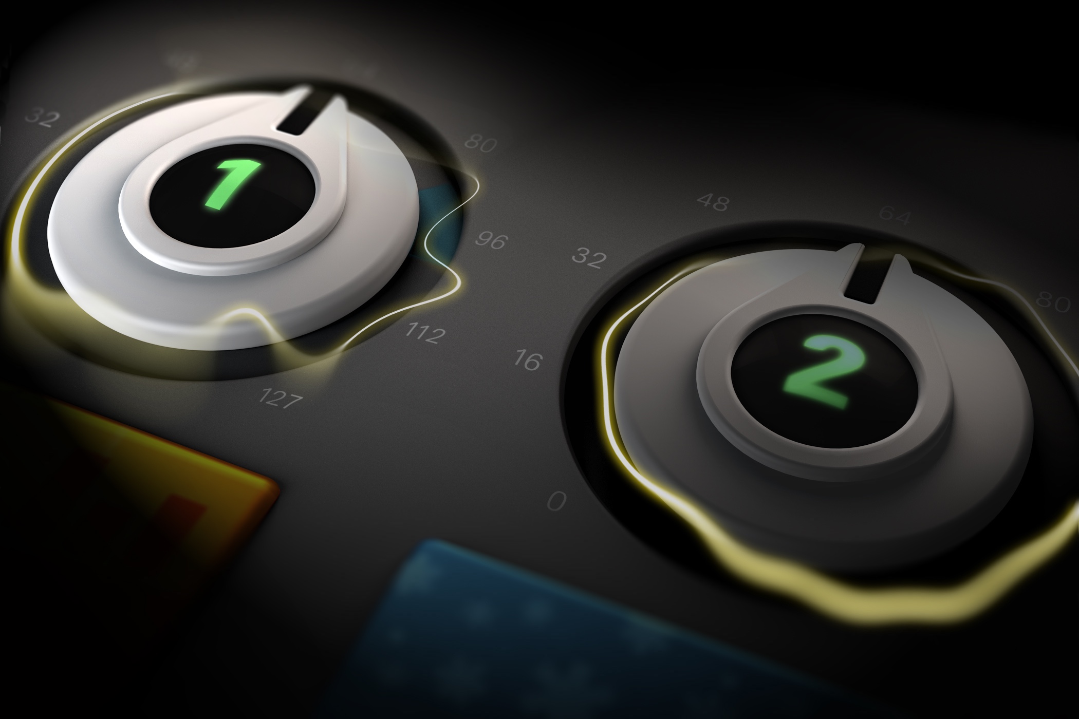Dictatorのフェーダーは、1つのスライドのみの操作で、複数のノブをコントロールすることができます。各ノブごとに、いつ、どのくらい回転させるかを設定することができます。