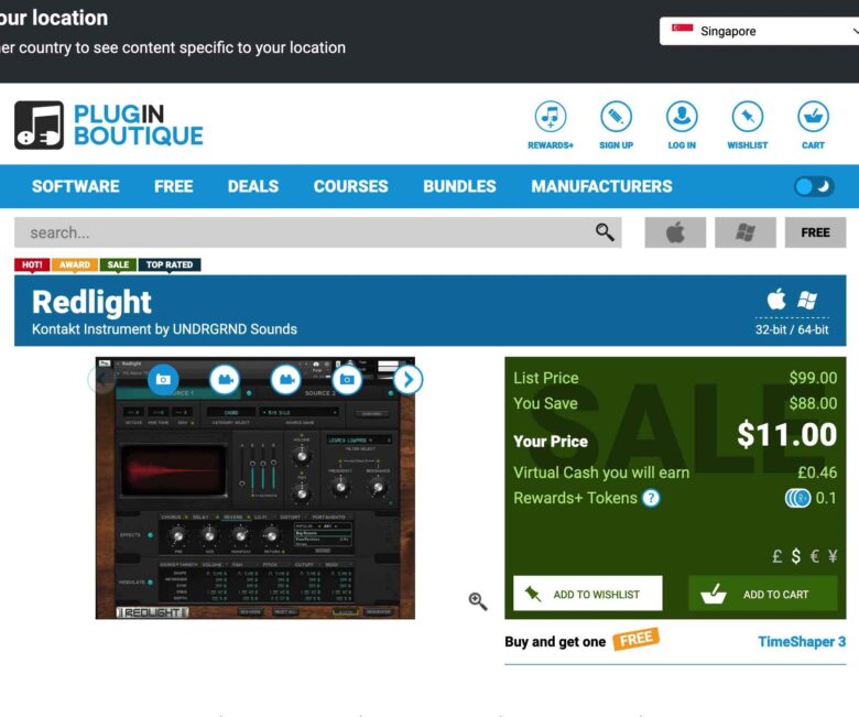 *上記の製品を購入時にセール元のPlugin Boutiqueで次の買い物から使用できるポイント「Virtual Cash」約0.43英国ポンド分が進呈されます。
