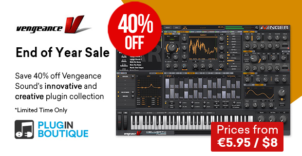 同社の超ベストセラーシンセ『VPS Avenger 2』のセール記事)以外にも、FX系プラグインなど全ての製品がセール対象になっています。