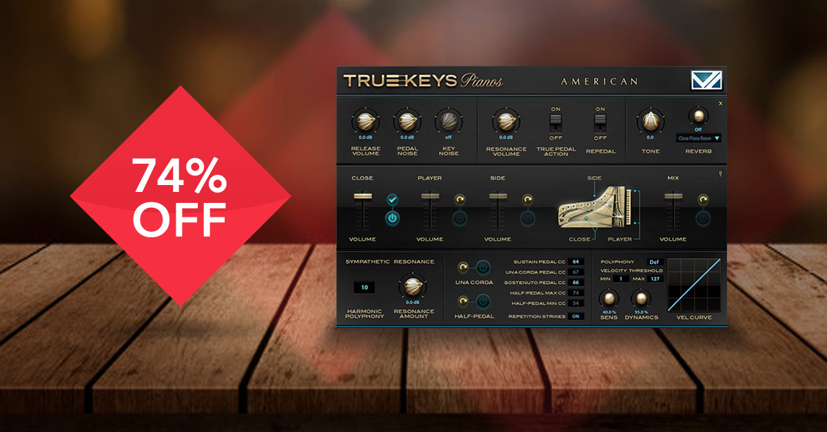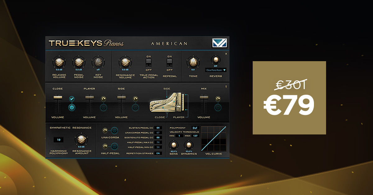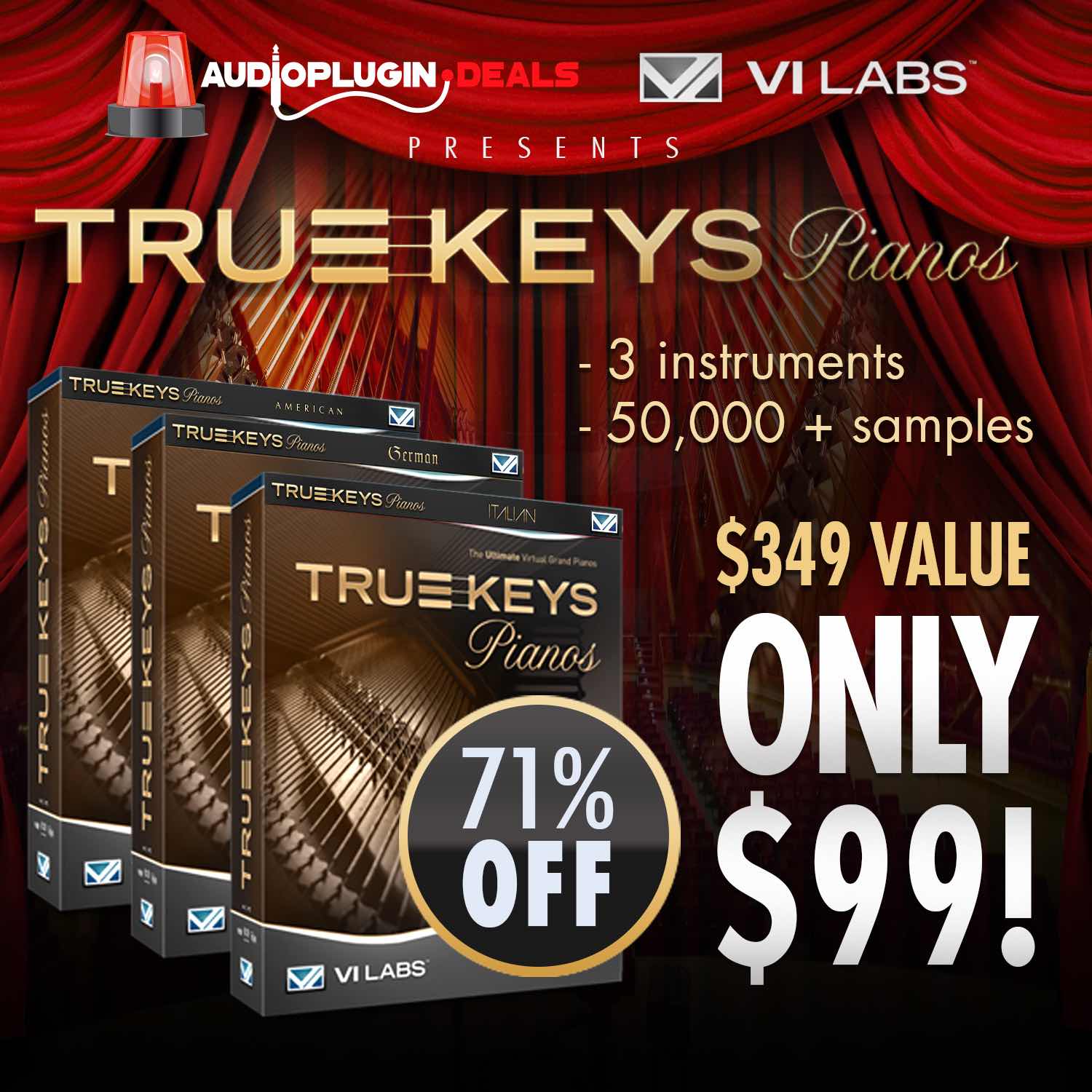 VI Labsの傑作バーチャルピアノ・インストゥルメント・バンドル『TRUE K78%OFF!EYS PIANO BUNDLE』が78%OFFの超特価セールになっています。最安値圏のセールです。