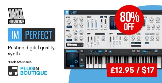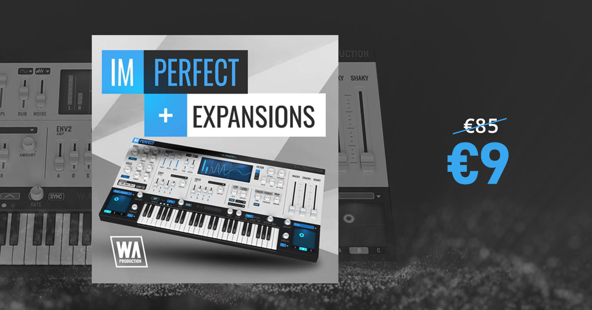 W.A Productionのシンセサイザープラグイン『ImPerfect』と拡張サウンドパック22製品がセットになったバンドル『ImPerfect & Expansions Bundle』が93%OFFのセールになっています。