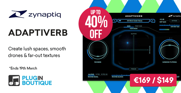 ZynaptiqのAI機能を搭載した人気のリバーブプラグイン『ADAPTIVERB』。