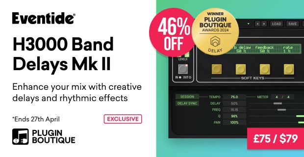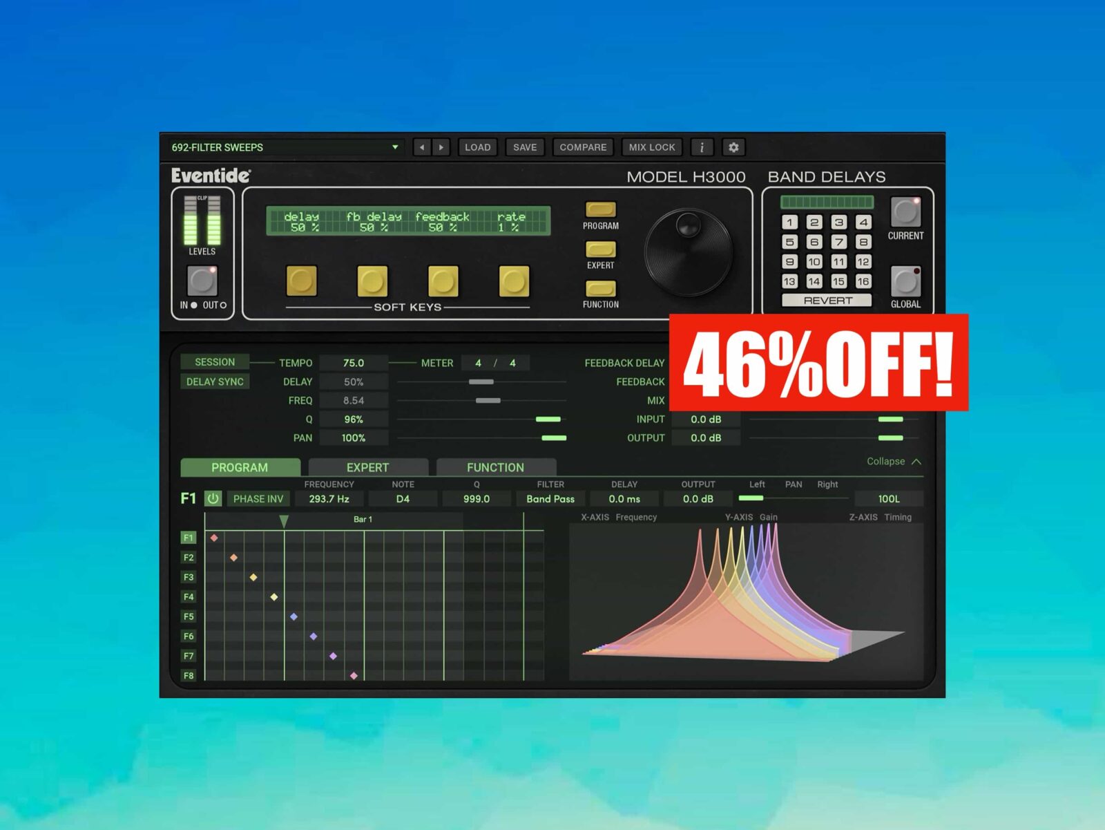 Eventideの人気FXプラグイン『H3000 Band Delays Mk II』(プロ用ディレイ)が期間限定セールで46%OFFになっています!
