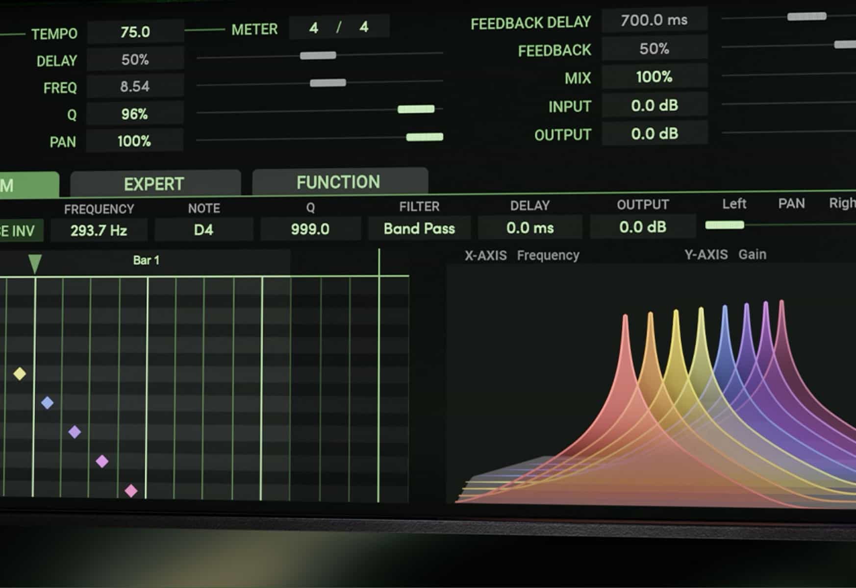 ディレイ、フィルタリング、ステレオ拡張、リズミカルな効果を備えたクリエイティブなツールで、8つのディレイバンドに個別コントロールを提供します。