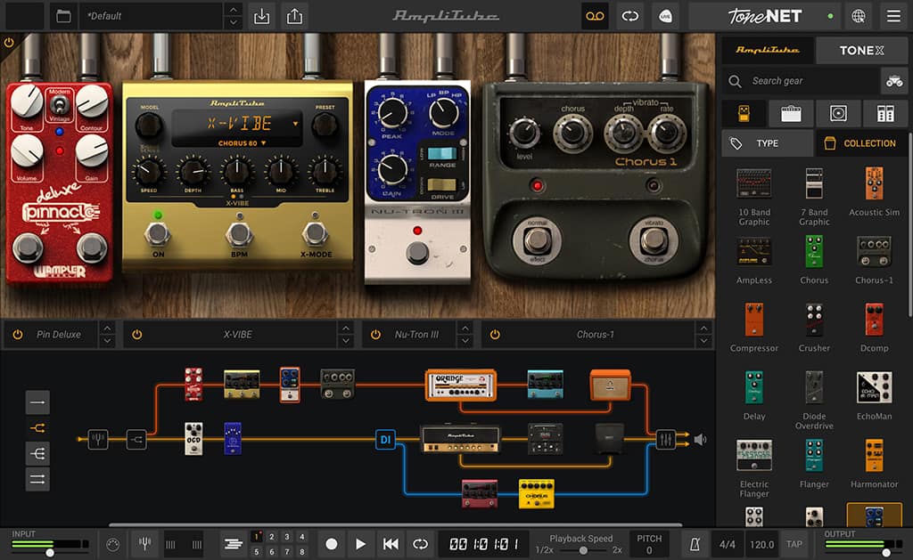 最上位版のAmpliTube 5 MAX v2*記事リンク)と比較して収録ギア数は抑えられていますが、最新のVIR™技術やルーティング機能といった基本性能は共通しています。