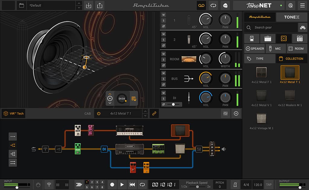 IK の DIM™ と VIR™ テクノロジーにより、AmpliTube はこれまでにないレベルで各機材のトーンと感触を忠実に再現します。
